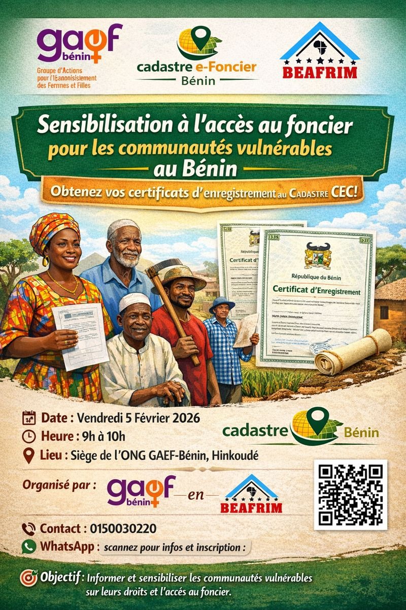 Sensibilisation à l'accès au foncier pour les communautés vulnérables au Bénin